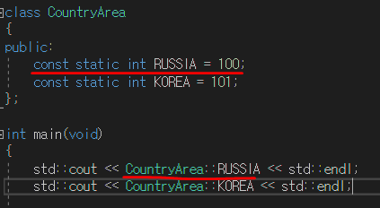 const static으로 선언되는 멤버변수(상수)는 다음과 같이 선언과 동시에 초기화가 가능