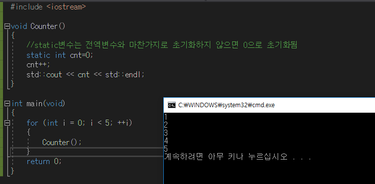 -한번만 초기화되고, 함수를 빠져나가도 소멸 안됨