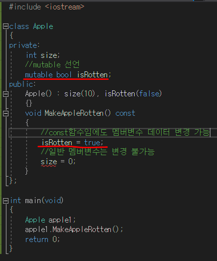 -const함수 내에서의 값의 변경을 예외적으로 허용