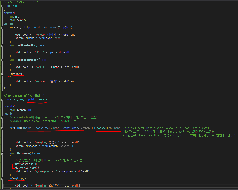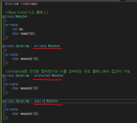 //주의점 : Base Class의 변수 두개가 private,public이 있는데 이걸 상속할경우